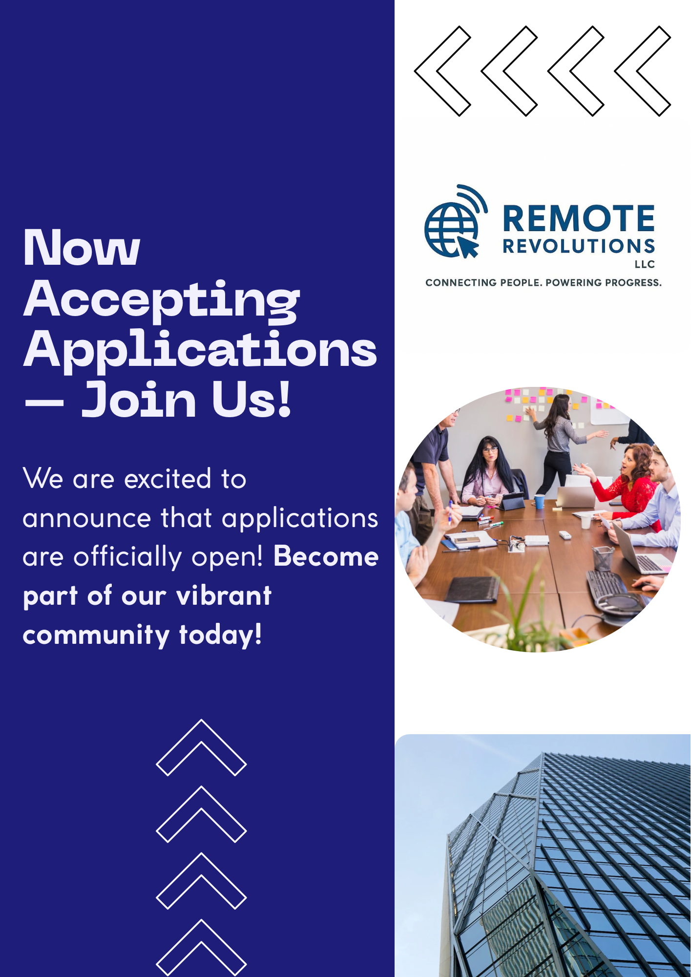 At Remote Revolutions LLC, our mission is to partner with businesses, state agencies, and government programs to connect top talent like you with meaningful remote work opportunities. We believe in creating accessible pathways to employment that empower individuals to develop their skills, grow their income, and enjoy the freedom and flexibility that comes with working from home. By handling the recruiting, training, onboarding, and ongoing support, we ensure our candidates are positioned to succeed in the evolving remote workforce.